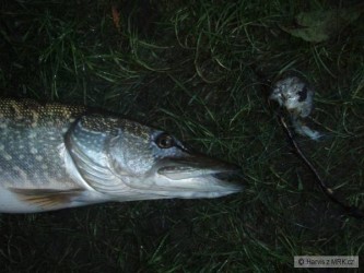 Gumovaná v Chrudimi. Dvě štičky 55+ se seznamovaly s nástrahou, ale ani jedna dost intimně. Součet je nula ryb chycených a jedna nalezená. Chudák štika 66cm visela na cca čtyřicítce vlasci důmyslně přivázaném na větvi u břehu. Již slušně zapáchající nástražní rybička posunutá po vlasci výše a slabej boj svědčí o delší době, kterou musela takto strávit. Dvojháčkem sešitý jícen mi nedovolil jí pustit. Byl to smutnej pohled...