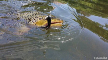 za slabé dvě hoďky jsem měl 15 záběrů a chyceno 10 pstruhů.....nejmenší měl 30cm a pět krasavců od 40 do 44cm....neskutečné ryby