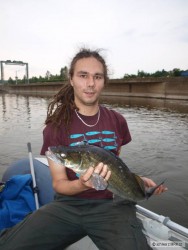 Dneska cestou z rachoty na dvě hoďky u vody. Na druhý nához zubatá, na třetí můj nejoblíbenější slider 7cm přes očko odletěl do dály..Pak už v tom mraku potěru zubatá nepřišla..Jen tak z legrace jsem sundal lanko a na klacek 12 - 42g a šňůru na 10kg dal rotačku jedničku..Kupodivu jsem se na ní dočkal pár pruhovaných a tlouštíka, kterýho bych na onom místě tedy rozhodně nečekal :-)