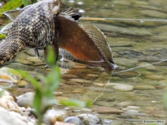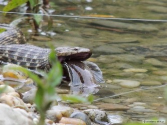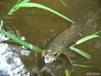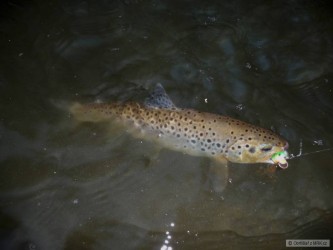 Po poledni jsem vyrazil zamuškařit na pstruhovku s tím, že si po včerejšku spravím reputaci. Čekal jsem hodně, ale že to dopadne hůř než včera, mě trochu dostalo. Ryby nikde, ani z mostu nebyly moc ve vodě vidět. Voda mírně podkalená, totálně bez aktivity. Takže jsem byl ve finále rád za 2 chycené potočáky. No, budu si muset brzy spravit rybářskej apetit.