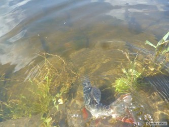 Jednu se mi povedlo cvaknout mobilem, dvě větší byly při pózování rychlejší :-)). Plavou v proudu dál.