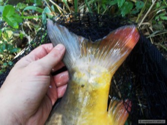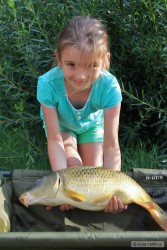 Ak keď nás zprvu kapre v blízkosti prekážok vyškolili, nakoniec sa predsa len čosi pochytalo - niekoľko kaprov okolo 7 - 7,6 kg a jeden bezchybný bojovník 88 cm a 13,1 kg.