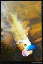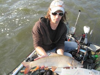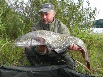 Mě se povedlo už v pátek večer vytáhnout kapry 65, 70 a 75 cm. V sobotu ráno jsem vytáhnul kapra 65 cm a ve stejnou dobu se rozjel prut konečně i Lucce a to z rozkrmeného. Asi po čvrt hodinnovém souboji ze člunu navedla do podběráku obřího šupináče. Po přeměření a zvážení jsme zjistili, že se zřejmě jedná o kapra s kterým jsem se již také setkal. Kapr měřil úžasných 97 cm a vážil 16,5 kg! Lucka byla štěstím bez sebe. Kapra nemohla ani unést. Na břehu jsme udělali jen rychlou fotku, kdyby jí utekl, aby měla památku a raději jsme kapra nafotili ve vodě. Do večera jsem vytáhl ještě jednoho menšího šupináče a lysce 79 cm a 8 kg. Večer jsme seděli nad sklenkou vína a užívali si pohodu u vody. Lucka mi říkala, že by jí zajímalo jestli je její úlovek fakt nejdelší kapr z revíru, jak jsem se domníval. Ráno znovu ve stejný čas se Lucce rozjel její ledabyle nahozený prut kus od břehu. Bylo to záběr jak z klasických historek, ovšem s dobrým koncem. Lucka uchopila prut, utáhla brzdu a hroznou rychlostí si kapr bral metry a metry vlasce. Neváhali jsme a vyjeli za rybou. Poradil jsem Lucce ať mu moc nepovoluje, aby nenašel na dně vázku. Byla to sranda pozorovat Lucku jak má její jemný prut chub outcast 10ft dlouhé minuty ohnutý až do vody a už neví jak by ho držela. Vše dobře dopadlo Lucka vytáhla druhý neuvěřitelný úlovek. Kapra 100 cm s váhou 16,2 kg. Úžasný, tmavý domorodec jen s jediným vpichem a to od Lucky háčku. Stejným způsobem jsme kapra nafotili a pustili. Lucka byla úplně hotová, oba jsme se radovali z úlovků a jeli spokojení domů. Takový víkend na svazovce jsem ještě nezažil.