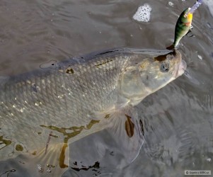 Víkendové aprílové počasí působilo na chování ryb velice prapodivně. Byly chvíle, kdy jsem se mohl doslova uházet a nezavadil ani o hřbet cejna a pak chvilky, kdy do vody mohlo padnout cokoliv, dokonce i umělá vláčecí nástraha a nic se stejně nedělo :) Kdybych nepřesedlal na lov blbenů a vytrvale se snažil o candáty, asi by z toho bylo ošklivé zero. Blbeni nezklamali a slušný počet i pěknějších ryb jsem si povodil. K tomu se připletl i nějaký jesen, jedna štička a pěkný tloušť, takže to chtělo jen ryby více hledat a zkoušet vše možné i nemožné a být proměnlivý jako to počasí :)