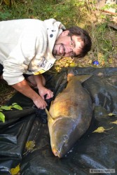 Jak jsem již na jaře předeslal, byl jsem letos rozhodnutý, vydat se minimálně jednou na podzimní výpravu pod Pálavské Vrchy. Naskytla se mi možnost uskutečnit tento výpad z lodi a to s kamarádem Jarou. Ani chvíli jsem neváhal a vyrazili jsme. Sice nám přehrada nechce vydat nic zadarmo a silný vítr nás už po druhé přinutil prchnout na břeh, ale i za těch cca 60 hodin co jsme na vodě strávili, jsem ulovil kolem 30 kaprů do 10kg, v čele s největšími 12,5kg, 12,8kg, 13kg a pak taky hlavně s tímhle překrásným Pálavským mohykánem. I tohoto lysce jsem jako všechny kapry přelstil z náhozu, do 70 metrů od lodi. Tuto výjimečnou rybu jsem jel jako jednu z mála zdolávat ze člunu, proto že mi projela tři vázky. Už při prvním pohledu na něj jsem věděl že je to obrovský kapr, ale stejně tak jsem viděl že visí do slova na krajíčku. V silném větru a vlnách to byl opravdu velmi adrenalinový souboj, kdy se mi klepala kolena jak za mlada a měl jsem do slova loveckou horečku;-) na štěstí vše dopadlo v můj prospěch a kaprovy háček vyletěl z tlamky až v podběráku a mohl vše tak zařadit do čela pomyslného seznamu mích nejcennějších úlovků. Vážil úctyhodných 23kg!