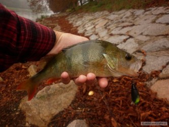 řeka dost přikalená a zvedlá tak o metr,přeháňky a dost foukalo,i tak se nějáká rybka připlavala kouknout na jedinýho rybáře v okolí
