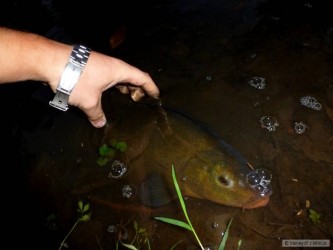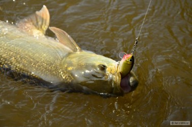 Jen jsem dorazil k řece, tak mi ruplo v zádech. Jenže domů se mi nechtělo a tak jsem se skoro po čtyřech připlazil k vodě. Zřejmě to byla dobrá taktika, protože hned první ryba měla přes čtyřicet:)
