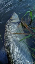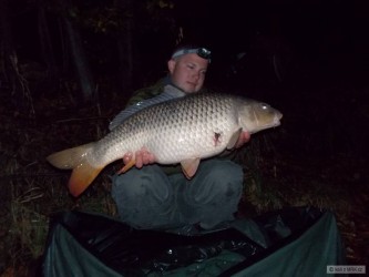 Při tréninku na závod jsem hnojákem netrefil úplně přesně loviště a místo 30 cm cejnů to vzal krásně nepravidelně šupinatej 49 cm macík. (mobilem)