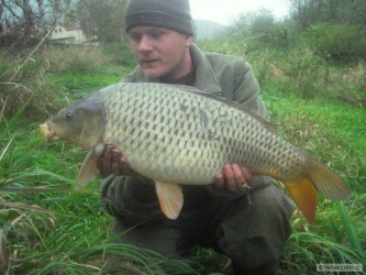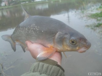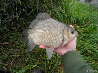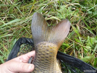 jeden z posledních kapříku co se povedl omlouvám jsem že je focen na zemi nebyl zrovna nikdo po ruce :-( plave dál