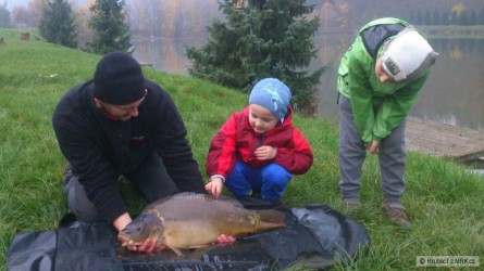 Dnes zase na kaprech. Zkoušel jsem krmit kuku z plechovky a peletkama, ale za dopoledne ani potah. A tak jsem po obědě odsunul bokem zbytek krmení z minulého týdne, namíchal čerstvé se zbytkem kuku, červama a peletkama a začal to házet co nejdál. Dva hrčáky šly do prázdna, pomohlo až převázání háčku a odměnou byl krasavec 86cm. Váha co mám je jen do 11,5kg a nestačila, tak ani nevím kolik měl. 0,12 návazec vydržel v pohodě. Následoval menší 67cm, pak dvě ponorky co se vyřízly. V tento moment to už šlo na hod, do pár minut hrčák, ale jen na methodfeeder (návazec 0,20). Prut s košíkem nic. Následně přijeli synovci, poprvé na rybách, a povedli se ještě tři krasavci 76cm, 73cm a 76cm. Ač to šlo na hod a byly dlouhé krásné souboje, prý je to nuda a počítač je lepší :-)