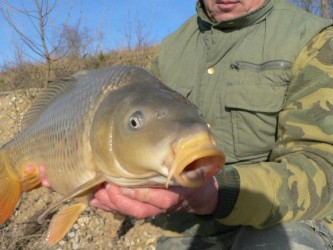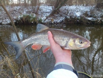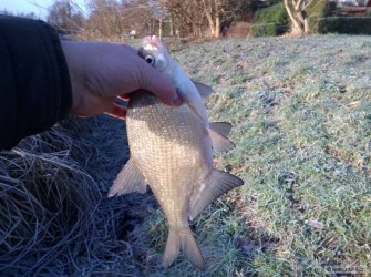 Živá se mi skoro zakuklila a přišlo mi líto ji jen tak vyhodit, tak jsem zajel nakrmit ryby. Dokonce se dal pod sněhem najít krtinec, takže s krmením problém nebyl. Hodinka jen nalehko s bičem přinesla asi 6 opatrných záběrů a bylo z toho 5 ryb ve dvou druzích. Naštěstí jsem měl sebou dvě kostřičky a paradoxně těžší brko dneska bodovalo. Pohodový to lov a pojedeme zítra zase.
