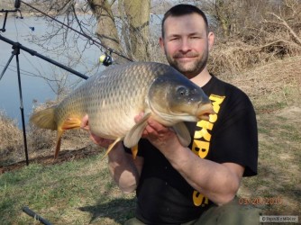 Podle mě jsem ho chytil díky tomu že jsem svého prvního kapra tohoto roku (53 cm, 3,5 kg) pustil a takhle krásně se mi to vrátilo ;) , sice nebyl vrácen vodě, ale i tak z něj mám radost.