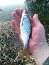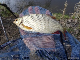 Dneska ryby moc nebraly. Nejdřív jsem chytal plavanou, pak jsem se usadil k jezu a převázal proutek na feeder. Chytil jsem jen jednu ouklejku a jesena, kterej mě velmi potěšil.