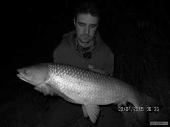Už za tmy sa mi čosi pokúsilo ukradnúť feederku, vylomilo prednú rázošku a v poslednom momente sa zachytil navijak o trávu tesne pri brehu, tažke som chytil prút za koniec rukoväte...