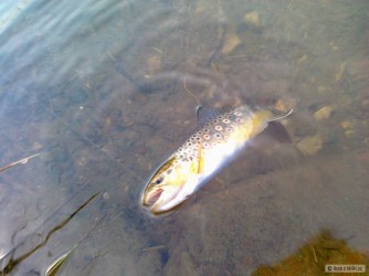 I když včera celý den pršelo, voda byla docela nízká a čistá. Ihned po příchodu k vodě jsem si všiml mnoha koleček od sbírajících ryb, líhlo se mnoho šedivých chrostíků a dokonce jsem viděl i několik velkých májovek. Za dvě hodiny jsem ulovil 10 perlínů, z nichž jeden měl skoro 25 cm, což je na této vodě pomalu rekord :-) a 5 malých tloušťů.
