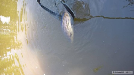 Po včerejší bouřce jsem neváhal a vyrazil na pár hodin k vodě. Zhruba po dvou hodinách se mi rozjel jeden s prutů a po chvíli jsem měl v síti podběráku tohoto šupináče.
