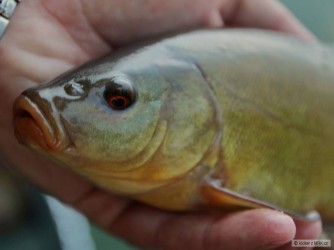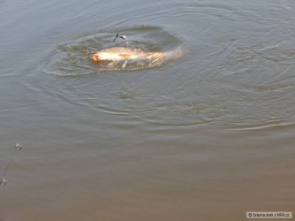 Lov na mieste zakŕmemom mixom peliet a na háčiku kukurica. Namiesto očakávaných lieňov brali meter od špičky mojej matchky červenice a kapry. Jeden z nich ma "upratal", vybral sa cez polku jazera a zbavil ma starosti o celú montáž vrátane plaváku...