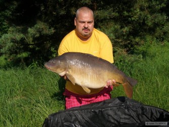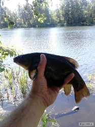Tak jsem se vrátil s úspěšné čtyřdenní výpravy na jednu zapomenutou svazovou pískovnu.Jedná se opravdu o jednu z mích nejmilejších vod, i když v minulosti jsme zde až tak úspěšní nebyli. Předpokládal jsem tedy,že zdejší zarybněnost nebude veliká. Ovšem hned po prvních pár hodinách bylo patrné, že tomu tak být nemusí.Podařilo se mi zdolat pět bojovných ryb, které mi v zdejších řasách dali co proto.Bylo jasno ryby zde jsou a mají hlad. Začal jsem pravidelně v hojném počtu krmit a vyplatilo se za čtyři dny se mi podařilo zdolat přes 20 ryb.I když úlovky to nejsou nějak rekordní ryb si nesmírně cením, protože neustálé zabroďování bylo nesmírně vyčerpávající.Ještě jsem plný dojmů......(foceno samospouští)