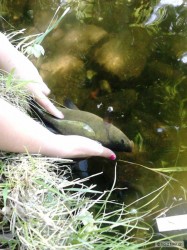 Musel sem vypustit rybníček kvůli bagrování... něco šlo do jinejch a něco sem nasypal do řeky... :-) cca 150 okyšů a nějaká další droboť