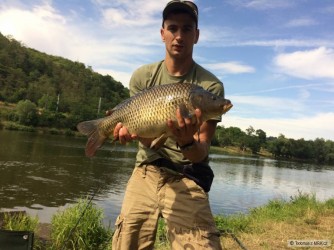 Využil jsem ochlazení a vyrazil na naší největší řeku.Za 4 dny sem docílil cca 30 záběrů většinou od kaprů s váhou 6-8kg na jeden prut.Druhým prutem jsem se snažil přelstít nějakého vousáče.Mezi menšími kapry se ukázali i tři lepší a to dvakrát 10kg a největší necelých 12kg.