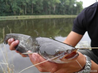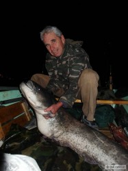 Letos mi to celkem na trhačku šlape, povětšinou Fídžovky. Tady jedna 105 cm, prezentuje kamarád. Potom přišel ještě jeden menší. Sumci šli zpět do vody.