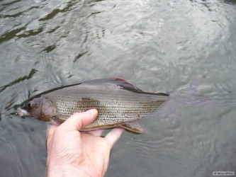 Tak jsem ráno vyrazil po dlouhé době chytat do proudu a ve stejnou dobu se na Znojemeské přehradě rozhodli, že upustí nějakou tu vodu, takže proudem teklo všechno. Nakonec jsem vytáhl krom větví, řas a listí dvě menší Parmy a jednoho pěkného Jesena.