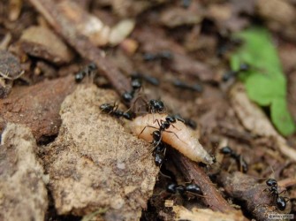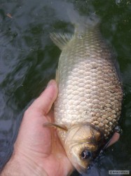 Cílovou rybou jsem pro dnešek vyhlásil karáska, namíchal karáskové krmení a s chutí do toho. Místo těžkého anglána jsem tam navázal 1g pevňáček a zalezl do houští do závětří. Fungovalo to znamenitě a dokonce ani nevadilo, že mi masňáky kradli draví mravenci nebo že mi moje karáskové krmení žralo pět druhů ryb. Tedy ono v tom krmení bylo celkově druhů asi více, ale ty čtyři druhy + cílové karásky jsem viděl na chvíli v podběráku. Pohodový to lov a pojedeme zase