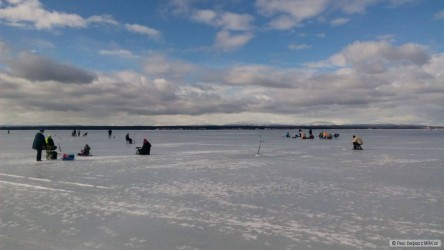 Led s tloušťkou 25+ cm poskytnul ještě dost zábavy dírkařské závody na závěr sezóny. Lovili se hlavně lipani (tady běžný jak ouklej), okouni a občas zabral siven nebo jezerní pstruh. Bralo se všechno a co gram to bod. Místo k lovu dle libosti, žádný rozhodčí a fajn grilovačka při vyhlášení výsledků.