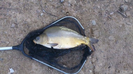 Včera "až" dve hodiny pri vode. Prvá hodina strávená s deťmi a ich stredobodom záujmu - bez šance na úlovok. Po ich odchode a nutnom ukľudnení okolia predsa len jeden, na túto vodu pekný, úlovok na domácu 18 mm guličku.