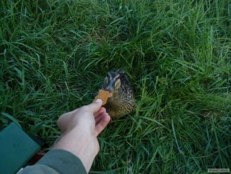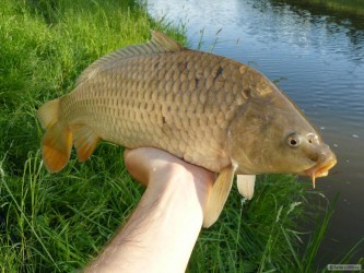 Po včerejších závodech mi zbylo trochu krmení a kvantum červů, tak jsem se rozhodl vyrazit na řeku potrápit zdejší šupinatce. Když přišel minutu po uvodním nahození poctivý kapří záběr "i s prutem", říkal jsem si, že to bude dobré. A taky bylo. Za tři hodiny lovu se na mě podívalo 8 kaprů +/- padesát, 14 cejnů kolem čtyřiceti, dva perlíni a tloušť. Navíc mi dělala společnost nezvykle klidná a vůbec ne plachá kačka, která seděla asi dva metry ode mě a sledovala ten koncert. Asi po hodině se přestala bát uplně a dokoce si sem tam z ruky vzala něco na zub. Luxusní rybačka, jen víc takových vycházek :-)