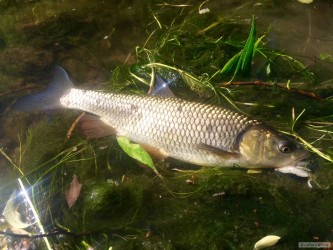 Dnes jsem šel na naši P řeku na plavačku na tlouště. Na úseku řeky,kde na ně chodím byla voda zarostlá vlčím morem tak že rybolov spíš připomínal slalom se splávkem, ale něco se povedlo, nejspíš to tam loni zanesly za sucha kačeny a daří se mu tam.