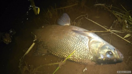 Mraky trávy vytahaný na břeh, ale vyplatilo se. Pár šupin se podařilo přes tu džungli dovést až do podběráku.