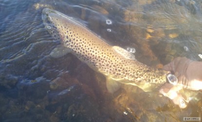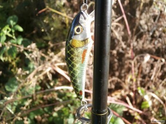 Dnešná prívlač... príchod okolo 12:30... na hladine vidno akú takú aktivitu boleňov, takže najprv povrchovka... 3x zalovilo no nemtrafilo... potom už hladinovka tvrdá ignorancia. Nastúpil thrill... nič. Potom plandavka, prvý zdolaný boleň, následne 3x za ním skočili malé štučky keď už bola plandavka pri brehu no nesekla sa ani ja a to bolo aj dobre nech kusa dorastú... plandavku začali aj ostrieže sledovať, no plandavka sa rozhodla ísť svojou vlastnou cestou a neviem ani ako pri náhode si odletela... inú plandavku som nemal :D okolo tretej trocha spŕchlo a koniec... už ani nebolo vidno aktivitu na hladine, premávali sa predo mnou bujaki bolene, ale ani si nedali námahu za nástrahou obzrieť... tak prišlo na rad UL a s ním nimi ostrieže a mini jalce... trpezlivosť mi tiež preveroval ta das 55cm pstruh (čestné skautské, vajčak)... skúsil som ho aspoň odfotiť no podmienky neboli priaznivé... akonáhle zbadal dajaký pohyb hocijakej nástrahy meter od neho migol a po pár minútach sa vrátil na svoju pozíciu :D ale bolo ho super aspoň sledovať, aj kapry ktoré mútili vodu v zatopených trávach a desiatky mini žabiek, ktoré dosť komplikovali pohyb po brehu