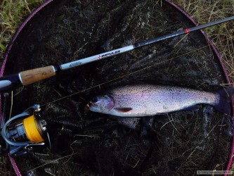Opět nám pršelo, vody stále dost, srdce rybáře plesá.Řeka se vyčistila od sedimentů a přebujeného vodního rostlinstva.Dnes jsem připadal jak na zahájení prakticky cokoliv jsem hodil do vody tak to mělo u ryb velkou odezvu,až na to že jsem byl u vod úplně sám.Prostě paráda duháci všech tvarů a barev, proložení sem tam dorostenci s rodu potočáků,doufal jsem v nějakého seniora,nu což nemůžu mít vše jednou nějakého jistě uvidím, prý tam stále jsou.Zpráva pro vodohospodáře ,pozor vybetonované koryta řek začínají narušovat houby, takže jděte sbírat, ať se vám nezačnou tvořit meandry :-).