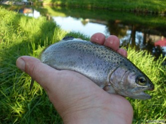Tak dneska asi opravdu přívlač na pstruhovce naposled,pokud přes víkend nespadne nějaká voda. Děkoval jsem svatému Petru a našemu spolku,že jsou ve vodě duháci protože brali opravdu výlučně duhoví,nic jiného.Tloušť nula,potočák taky a za okounama bych musel šlapat na až horní tok..Duháci na de mnou stejně zvítězili dva jsem zdolal,čtyři zas přemohli mě a jeden mě zesměšnil když odmítl čekat na přeměření a vrátil se bez povolení do vody.Ještě jsem zdolal jeden vlhčený ubrousek bránil se urpuntně,ale neměl šanci,poslední dobou se u nás nějak přemnožily.