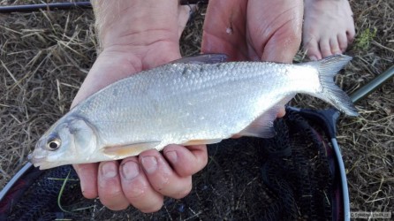 Po ranní návštěvě transfuzky jsem si naplánoval pohodové volné dopoledne s procházkou kolem vody. S sebou jenom prut, podběrák a dva rohlíky do kapsy. Na mělčinkách a kolem stromů plno malých kaprů, ale až v pravé poledne jsem narazil na párek pěkných amurů, rohlík z hladiny sebral ten menší z dvojice, ale i tak o kousek vylepšený osobák.