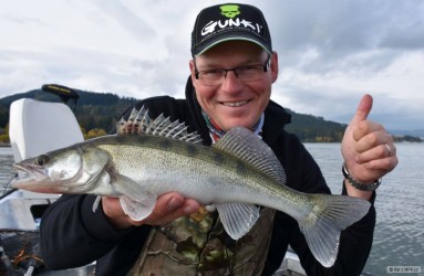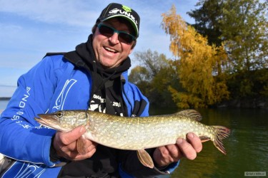 Přidám o chlup větší uvláčené a vydřené tři okouny než kolega pode mnou, jeden měl dokonce i přes třicet. Díky mému lemplovství a vybitému telefonu, jsem mohl mít i krásnou fotečku mírového candáta, kterého jsem podebral a ve vší opatrnosti vrátil zase zpátky jakožto hurvínka, po kterém se však předtím zčistajasna vrhla tak pětašedesátka kudla, a buď si s ním chtěla pohrát, nebo si společně zalovit, a nebo ho chtěla prachsprostě sežrat:-) Candidátek měl bez cenťáku pade. No přiznám se, vyplivnul mi v podběráku kopyto, tak jsem ho tam chvilku nechal a zatoužil tu zlou a zákeřnou malou štiku sežrat!! Asi pět minut jsem na ní zkoušel bezúspěšně stejným kopytem házet, a až potom se mi ho zželelo, popřál jsem mu ještě alespoň šedesátku, zatlačil slzy i chuť na dvě filátka a poradil mu ať se vyhýbá zubatkám velkým obloukem. To video bych popravdě natočit chtěl, koukal jsem na to v čisté podzimní vodě jak tele na nový vrata, nikdy jsem nic podobného neviděl a ten zážitek si navždy uchovám v srdci i paměti i bez dokumentace. Něco podobného přeji všem podobně postiženým bláznům jako já, Petrův zdar a neopomenu poděkovat své manželce, která mě trpí a snáší i moje krátkodobé nepříliš časté vycházky k vodě:-)))