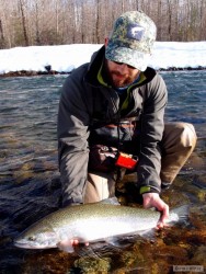 Je to tááááám!!!!! Další sen splněn, steelhead na mušák. Dřív než jsem sám čekal a doufal. Vyšlo úplně krásné počasí a na řece skoro nikdo. První ryba mi to komplet očesala - asi špatnej uzel, nebyla to taková rána. Na dalším runu už jsem se radoval já. 72cm čistého chromu. Neskutečná radost a euforie. Velké díky kamarádovi Tomášovi za super fotky.
