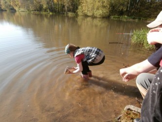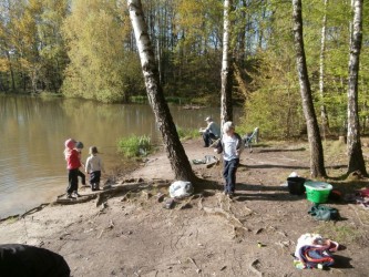 Když mi volal kamarád, že bere i svoje tři děcka, tak.....Výsledek - jeden fešácký lyseček, dva urvané splávky, jeden stržený prut z vidliček a jedno total vykoupané dítě... Myslím, že na hodně dlouho budeme jezdit sami.....