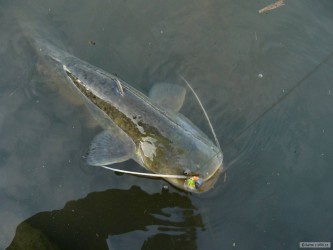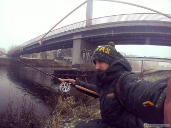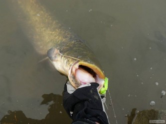 Po minulé úspěšné vyjížďce mě neustále hlodala myšlenka na brzké repete a včera jsem se definitivně rozhodl vyrazit na poslední letošní tažení. Opět jsem přibral na výpravu parťáka (tentokrát jiného) a vydali jsme se na cestu, která místy spíše připomínala trip na víkendovou lyžovačku. Sněhu bylo na silnici a okolních polích opravdu požehnaně, ale i tak jsme se k řece dostali relativně brzy. První hodina chytání byla chladná a bez kontaktu s rybou, s přibývajícím časem ale vylezlo sluníčko a udělalo se hezky teplo. Vrstvy sněhu pod slunečními paprsky rychle mizely a odtátá voda začala postupně zvedat a kalit řeku. Tento sled událostí odstartoval sumčí apetit a během chvíle jsem obdržel čtyři pěkné záběry. První kopanec měl na svědomí neveliký sumík, který spadl z háčku po krátkém boji. Bohužel jsem po klepnutí nedostatečně zasekl a háček ho nejspíš jen polechtal v kartáči. Druhý a třetí záběr byl úspěšně proměněn (viz foto) a záběr čtvrtý byl z kategorie "vázka, co se rozjela". Po jemném nadlehčení a následném ztěžknutí nástrahy přišel zásek jak do pařezu. Po mohutném zamletí vyrazila ryba pomalým tempem proti proudu, ujela deset metrů a poté se sunula silou lokomotivy zase dolů. Takové kolečko si dvakrát zopakovala a já mohl jen pasivně přihlížet. Když už se zdálo, že do průběhu mače trochu promluvím, přišla ještě jedna otočka a tah v prutu povolil. Vytáhl jsem lehce narovnaný háček a pěkný kus slizu na vlasci. Každý den holt nemůže být posvícení.. Z nadějného místa nás posléze vyhnal plovoucí bordel, který se neustále chytal na šňůry a znemožňoval nám rozumný lov. Kalná řeka také dočista vyřadila ze hry candáty, o které jsme ani nezavadili. Zvolili jsme proto přesun na jiné místo, kde kolega promarnil dvě ryby na prutu a já už jen trhal nástrahy. Rázem bylo šero a další den na rybách byl nenávratně pryč. Odebrali jsme se tedy k autu a vyrazili směrem k domovu bohatší o další zážitky. A o tom to přece je :-)