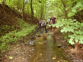 Sobotní prahování a budování usměrńovačů proudění.Díky tomu,že přijel pomoci i pan projektant,tak jsme s ním přímo na místě probírali, kde je lepší budovat prahy a kde usměrńovače proudění a hned jsme si kombinaci obou na místě vyzkoušeli.Zajímavé bylo,že před začátkem potok vypadal jak před vyschnutím s minimem vody a po dokončení jak mávnutím kouzelného proutku tam teklo mnohem více vody.Pro rejpaly-nepršelo u nás,tak tím to nebylo)-)-)-)-.Petrův Zdar