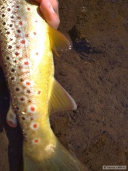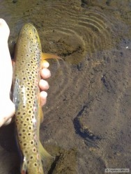 Po deštích jsem vyrazil asi po měsíci opět na ryby na moji milovanou říčku rozloučit se s pstruhovou sezónou. Chytil jsem mnoho pěkných tloušťů, nějaké okouny a v mé oblíbené tůni pod skalou jsem chytil tohoto krásného pstruha. Na závěr sezóny děkuju těžce zkoušené přírodě i pánu bohu za to, že nám zase umožnili mnoho krásných chvil u vody.