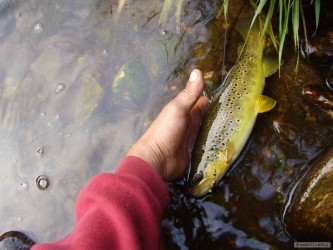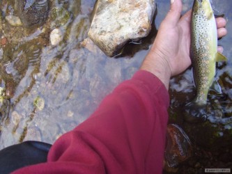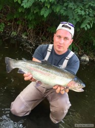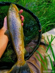 Po deštích jsem vyrazil asi po měsíci opět na ryby na moji milovanou říčku rozloučit se s pstruhovou sezónou. Chytil jsem mnoho pěkných tloušťů, nějaké okouny a v mé oblíbené tůni pod skalou jsem chytil tohoto krásného pstruha. Na závěr sezóny děkuju těžce zkoušené přírodě i pánu bohu za to, že nám zase umožnili mnoho krásných chvil u vody.