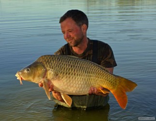 v průběhu týdne jsme se krásně vystřídali a každý zažil pěknou sérii záběrů. Ke konci výpravy mi nástrahu začínají atakovat menší ryby. Je čas pro další změnu a tou jsou dvě 25 mm kuličky boilies a trochu ubírám na množství tohoto krmení. Záběrů mám nyní méně, zato váhová kategorie šla rapidně nahoru. Ještě před příjezdem jsme se dohodli, že vše pojmeme jako malé přátelské závody na 3 největší ryby. Po dalším pěkném šupináči se dostávám opět do vedení, ale nakonec vítězí kamarád Standa, kterému samozřejmě patří gratulace...