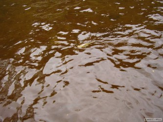 Po pěkných ploticích a skalácích přišel záběr od ryby evidentně jiné. Musel jsem s ní několik desítek metrů po proudu, ale ani tam, v klidnější vodě, nechtěla se mi poddat. Myslel jsem, že je to snad velký cejn chycený za triko. Když jsem ji uviděl, zatajil se mi dech... Podoustev, a kapitální! Nešlo ji nezměřit (na mělčině) 51 čísel.