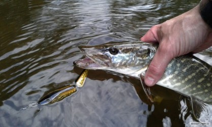 Zahájeno. 2 revíry, 10 bolenů, 2 candáti, 2 tloušti, 2 urvané woblery a asi dalších 30-40 nedobraných záběrů či spadlých ryb. Také jsem dnes poprvé zkusil chytat v broďákach a byla to nová dimenze. Ten zelený wobler z Aliexpressu sice chodil dobře, ale ten asi 40cm tloušť na fotce narovnal háčky bez mrknutí oka. Nakonec jsem woblera urval o dno a tím se věc sama vyřešila.