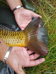 Dnes na rybníku úhoř 77cm, v sobě křížence plotičky s cejnem-16cm a ještě sebral 8cm plotici.