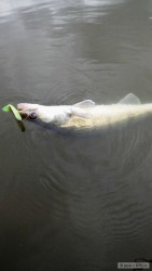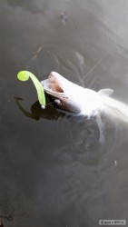 Včera mě to k vodě táhlo, ani vlastně nevím proč. Možná podmračené počasí, lehké oteplení nebo prostě jsem to jenom už zase nemohl vydržet a musel někam vyrazit zkusit štěstí. Co kdyby zrovna dneska... No po příjezdu k vodě se rozjel docela slušný zahradní deštík a během chvilky jsem byl mokrý, ale bylo teplo, takže jsem se rozhodl zůstat. Přeci to po půl hoďce u vody nevzdám že jo.. A navíc všude kolem voda vřela od lovících dravců. Většinou na rybky útočili hlavně věčně hladoví boleni, ale říkal jsem si, že toho zmatku v hejnech rybiček, které jejich výpady způsobovaly, musí využít i jiní dravci. A tak jsem poctivě proklepával dno pod nimi. Celkem se nic nedělo, ale chtěl jsem ještě nasadit barvu gumy, kterou jsem zkoušel dělat jednomu zájemci a co se mi hodně líbila. Nejdřív to vypadalo, že se nebude dít nic, ale pak to lehce kleplo a já vytáhl gumku strženou z háčku. Na druhý nához už se ryba pověsila sama a nakonec se z toho vyklubala docela fajn "céčkovaná". K tomu ještě kapr za hřbet, malá kudla a dva nenažraní "boláci". Takže nakonec fajn vycházka, všechny rybky plavou dál a já si zase ve své "krabici" našel místo pro novou oblíbenou barvu..