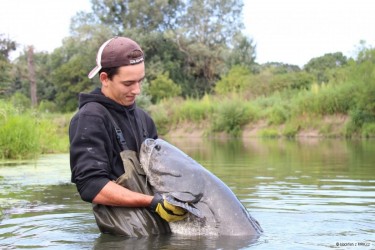 Okamžitě začaly mizet desítky metrů šňůry ve tmě. Hladina adrenalinu byla během chvilky na svém maximu.Bylo nutné rybu zastavit a otočit, než vymotá bzučící cívku navijáku. Nasleduje dotažení brzdy, ryba se otáčí. Během souboje se do toho ještě přimotá i vysoká nervozita z blížící se bouřky. Jsem hluboko v divočině několik km od auta. Snad to stihnu říkám si. Za necelou hodinu bylo dobojováno a výsledek byl docela neočekávaný a nechtěný úlovek. Naměřeno 122 cm (možná byl o něco větší), těžkej jako prase :-).