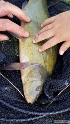 Pekná vychádzka. 175cm, cca 35kg, 30 minút preťahovania v hlavnom prúde a cca 200m presun po brehu. Tento rok prvá vychádzka na fúzatých, zadarilo sa.